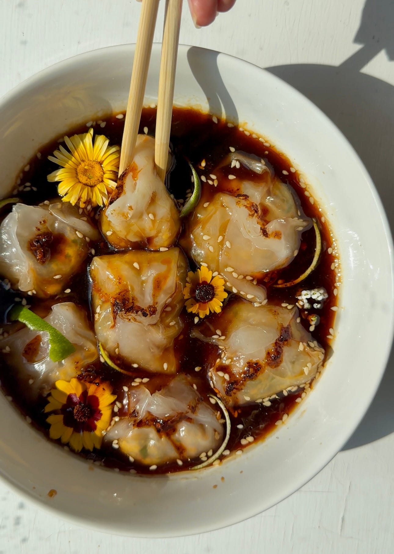Serve: Pour sauce into a shallow bowl or plate and nest dumplings in the sauce so they sit partially submerged. Garnish as desired. Serve warm or at room temperature. Option to serve the dumplings and dip separately like a normal person but floating is more fun.
