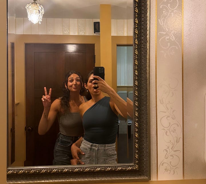 Amy is the meaner and edgier one - but actually I’m meaner once you get to know me (she’s a Libra). She can pull off baggier clothes way better than me and she’ll be the first to flip you off if you say anything to her at a bar. She went through this phase where anytime she would go out she HAD to find a stage, get on it, and start singing or speaking into a microphone. She was dragged off more than once. This is off-brand for her because she fears public speaking, but maybe deep down she is destined for it. Or maybe she just had one too many vodky sodies. Her strengths include: